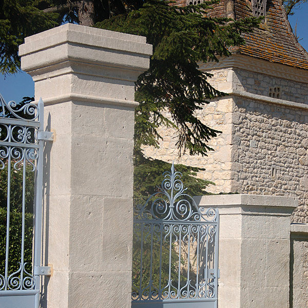 Piliers massif d'un auvent rustique. Des piliers d'entrées avec des chapeau et des socles moulurés. Des colonnes sur toutes dimensions.
